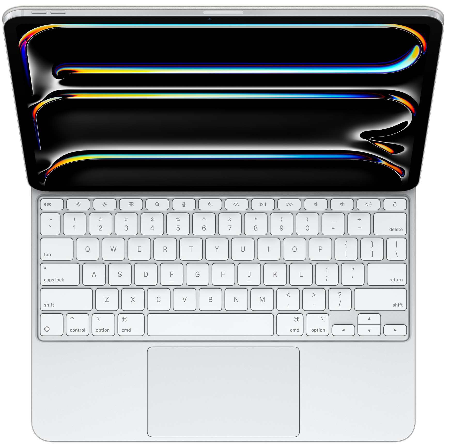 Превратите iPad в настоящий ноутбук! Испытайте непревзойденный комфорт набора текста с инновационной Magic Keyboard. Изящный дизайн, плавающая конструкция и регулируемый угол обзора обеспечат максимальную продуктивность в любом месте. Большой стеклянный трекпад с поддержкой Multi-Touch жестов откроет новые горизонты управления iPadOS, а 14-функциональная клавишная панель обеспечит быстрый доступ к важным настройкам. Разъем USB‑C позволит заряжать iPad, не отключая клавиатуру. Тонкий, легкий и портативный дизайн — идеальный компаньон для вашего творчества и работы. Плюс надежная защита передней и задней панелей вашего iPad Pro.