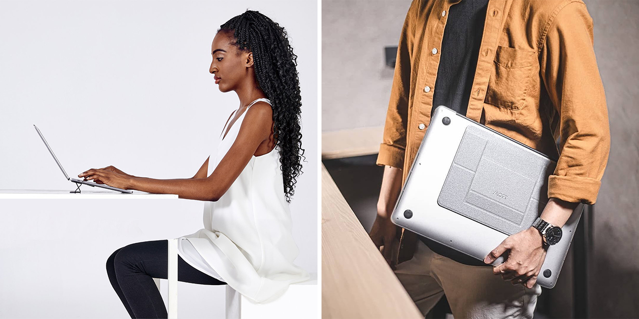 Наклон на 10 градусов обеспечивает повышенный комфорт при наборе текста и повседневных задачах. Даже такого угла достаточно, чтобы приподнять экран: таким образом снижается нагрузка на мышцы шеи, а ощущения от работы с дисплеем ноутбука приближаются к таковым при использовании отдельного монитора. Толщина подставки в сложенном состоянии составляет всего 3 мм.